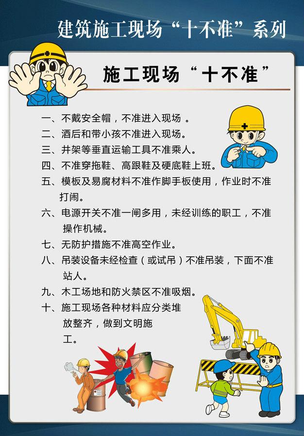 在此,為大家提供建筑工程施工現場常有“十不準”的掛圖,以防患于未然,為建筑工人的安全保駕護航。在此,為您分享九款掛圖,總有一款是您需要的!