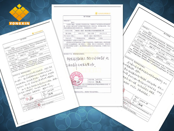 隨著地坪種類的不斷豐富,應(yīng)用領(lǐng)域的不斷擴(kuò)大,地坪工程質(zhì)量已經(jīng)成為地坪行業(yè)持續(xù)發(fā)展的關(guān)鍵。一個優(yōu)質(zhì)的地坪工程產(chǎn)品,不再僅僅是面層材料選用和施工,更重要的是地面整體系統(tǒng),即面層+基層的整體方案設(shè)計(jì)與施工。武漢永信地坪用多年的經(jīng)驗(yàn)和口碑得到了客戶的認(rèn)可、得到了中國建筑材料聯(lián)合會地坪分會的官方認(rèn)證。武漢永信將繼續(xù)致力于引進(jìn)更加綠色、節(jié)能環(huán)保的新型建材,用我們自己的 產(chǎn)品為我們代言!